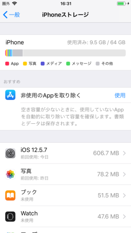 64Gモデルで10Gバイトほどが使われています。